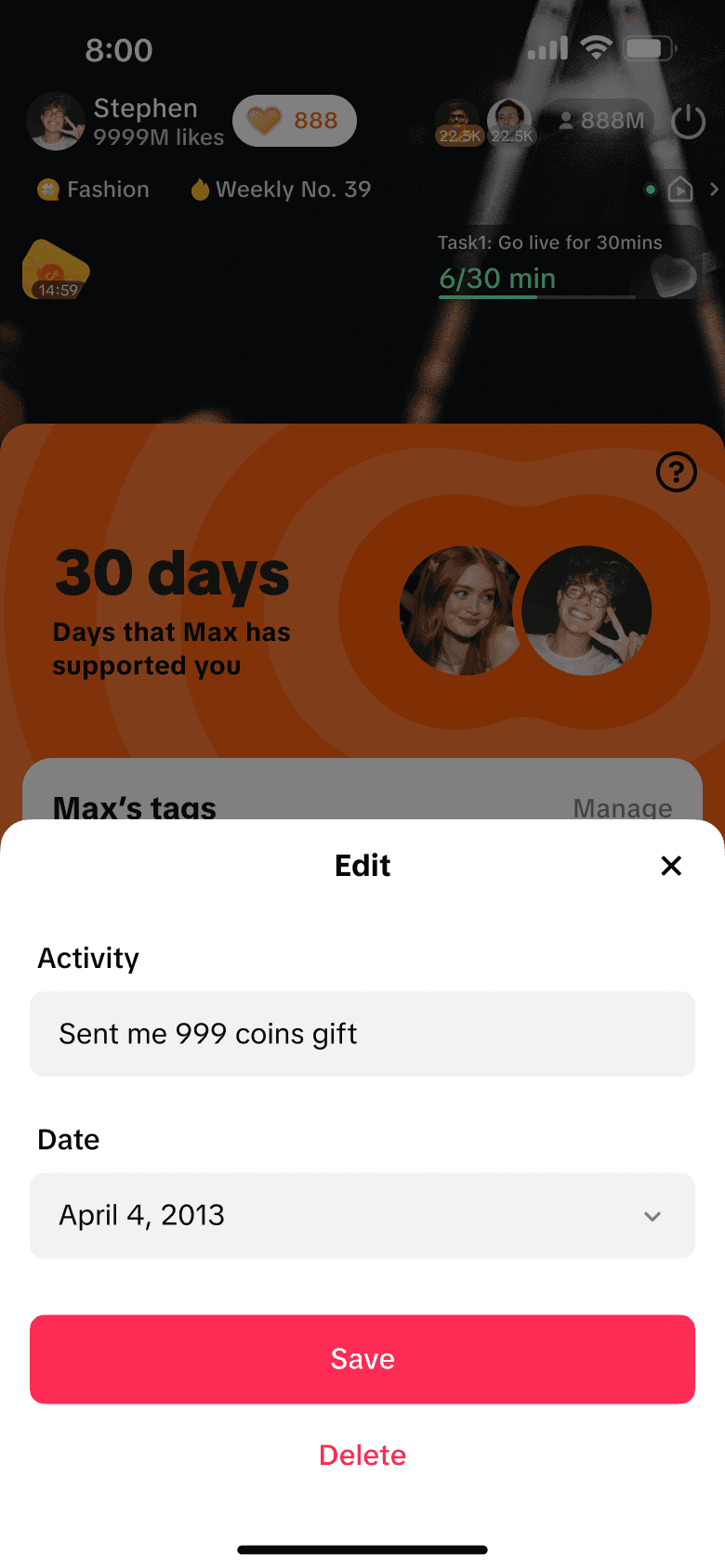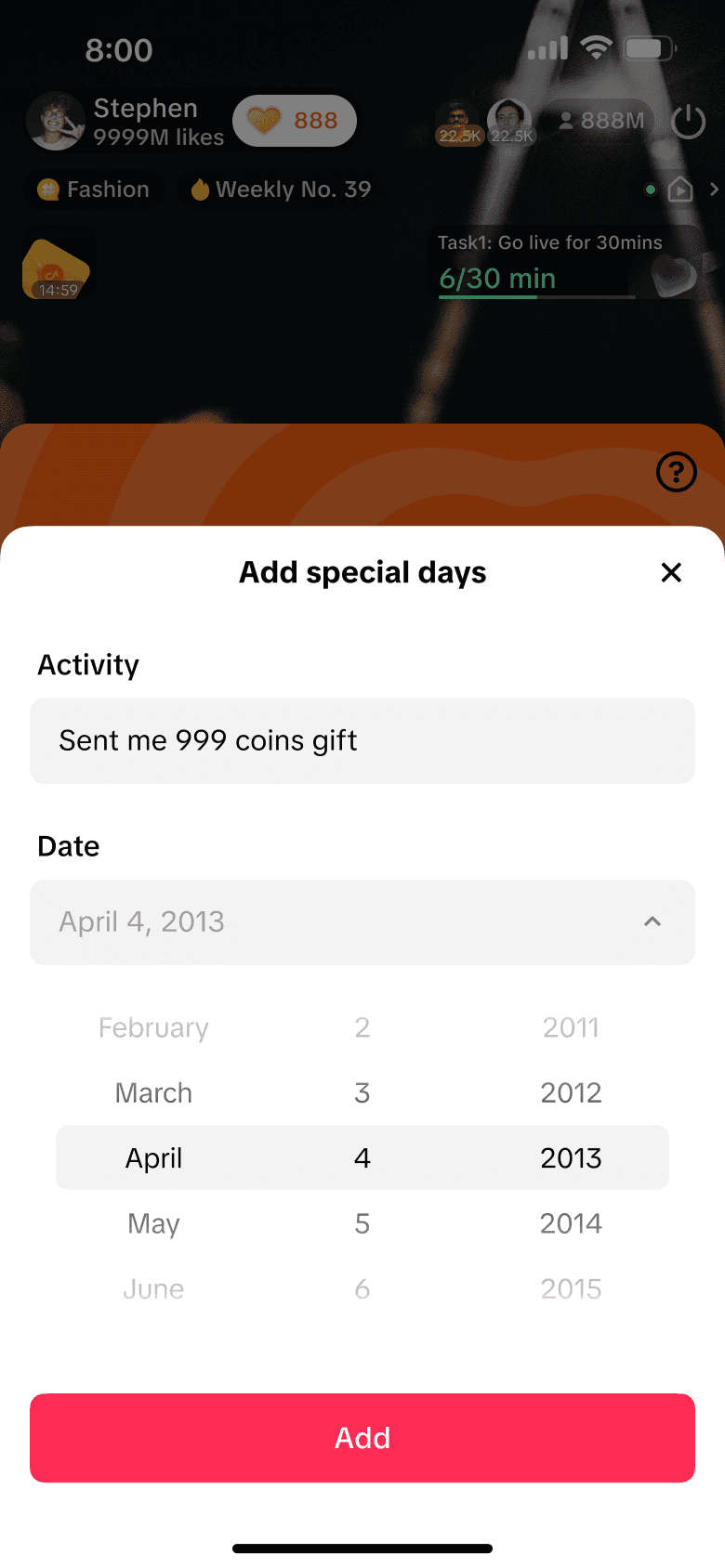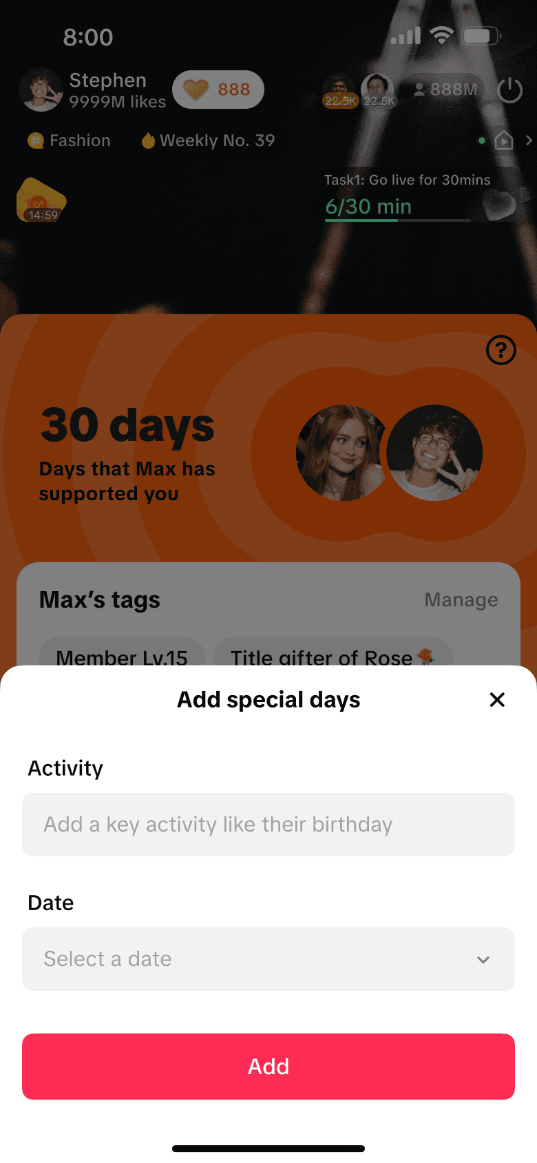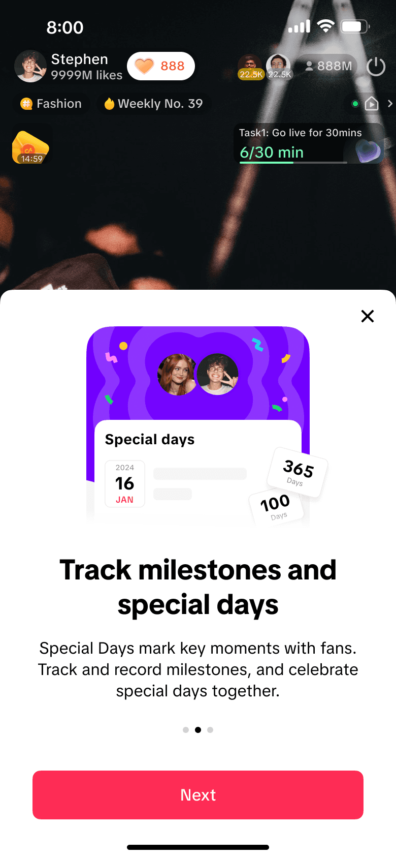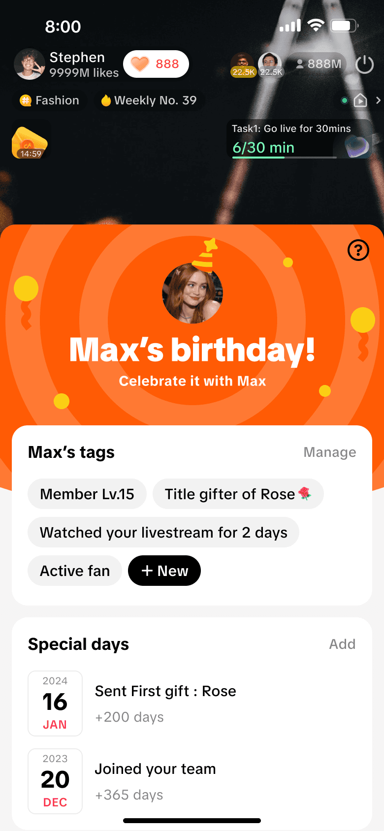 默认展示〈加团 / 首次送礼〉等重要时刻,加深情感连结