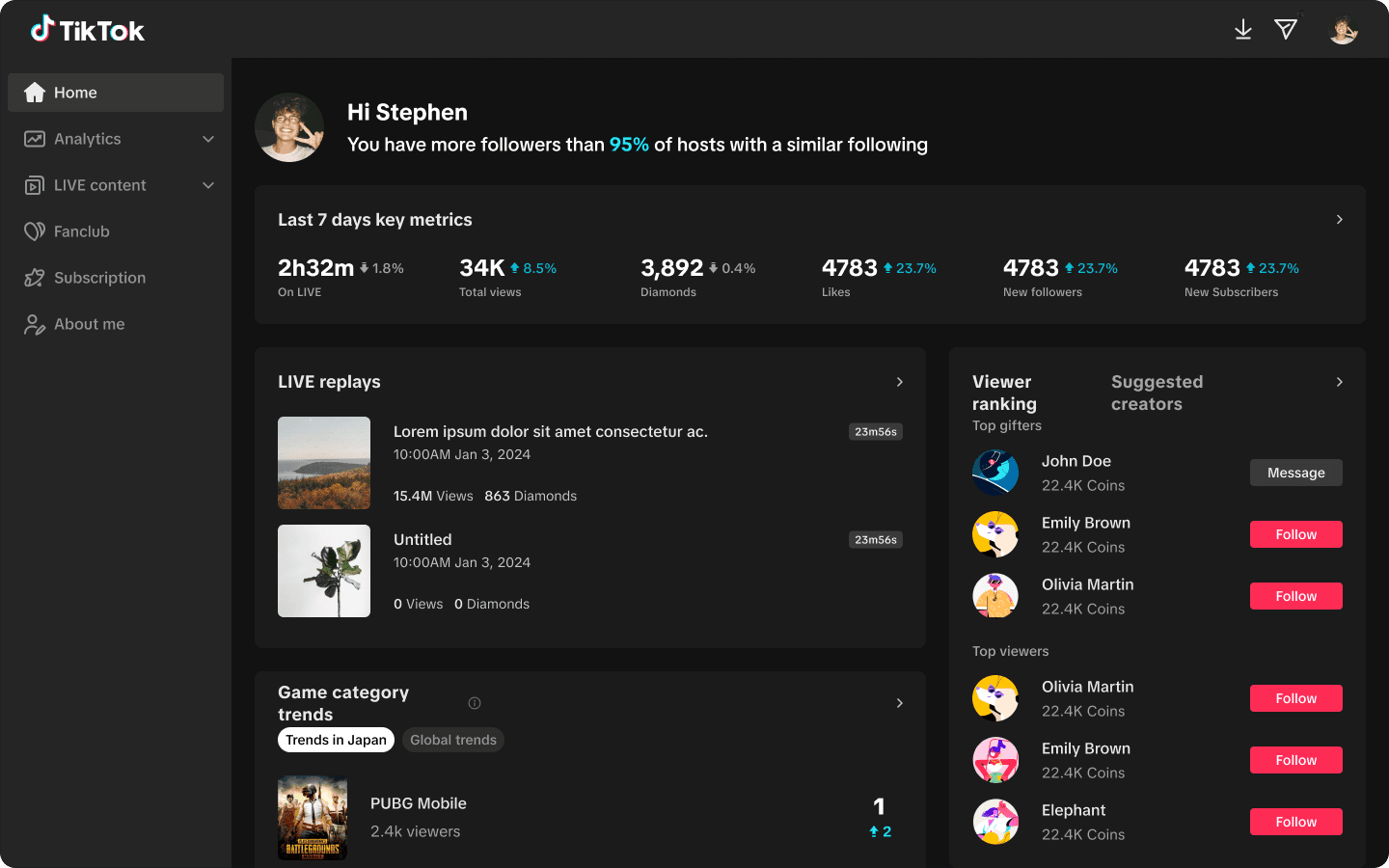 经调研了解,Tiktok中下部主播无专业经纪团队,只是依赖本能和记忆力与观众互动,关系运营能力弱。